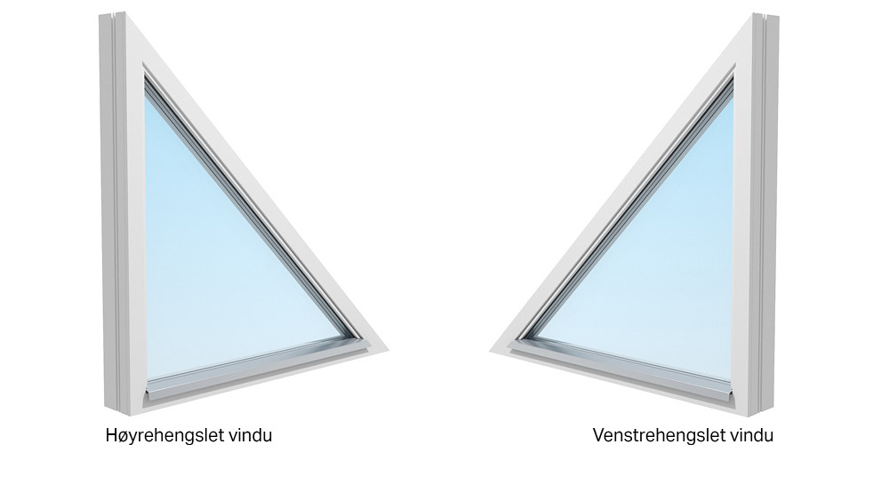 Et fast og trekantet vindu i tre. Energiglasset gjør dette til et vindu som er både lett å vedlikeholde og som holder varmen innendørs.